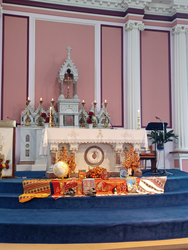 Die Tage waren reich gefüllt. Dublin, die Hauptstadt Irlands zeigte sich quirlig und jung, eine Stadtrundfahrt und der Besuch der St. Patricks-Cathedral brachten einen ersten Eindruck. Durch die Berge von Wicklow ging es tagsdarauf nach Glendalough, einer Klosteranlage aus dem 6. Jahrhundert, gegründet vom Hl. Kevin. Der anschließende Gottesdienst wurde in einer von drei Kilians-Kirchen Irlands gefeiert, in Greystone. Dass die katholischen Kirchen erst wieder seit dem 19. Jahrhundert für die Katholiken zur Verfügung stehen, merkte man deutlich an der Gestaltung und Bauweise. Hier hatte die jahrhundertelange Fremdherrschaft durch die Engländer ihre Spuren hinterlassen. Der dritte Tag stand ganz im Zeichen des Patrons des Bistums Würzburg. Es ging nach Mullagh, dem Geburtsort Kilians. Dort wurde die Pilgergruppe nach dem Gottesdienst in der Pfarrkirche St. Kilian von der Gemeinde im St. Kilians Heritage Centre willkommen geheißen. Alle erinnerten sich noch voller Freude an den Besuch von Bischof Franz 2024 mit einer Abordnung aus dem Bistum, als die Häupter der Frankenapostel für einige Tage in Mullagh zu Gast sein durften. Beim anschließenden Abstecher nach Monasterboice konnten beeindruckende irische Kreuze - bis zu 6,50 m hoch - bewundert werden. Diese trotzen seit Jahrhunderten der Witterung und zeigen noch heute wunderschöne Reliefs mit biblischen Szenen. Nach Tralee ging es tagsdarauf, unterbrochen vom Besuch des 'Rock of Cashel', einer kirchen- und kunsthistorisch bedeutsamen Sehenswürdigkeit Irlands. Zu Irland gehört neben dem Guiness (-bier) auch der Whiskey. Und so durfte ein Besuch der größten Destillerie nicht fehlen. Am Samstag bestaunte die Gruppe den Killarney Nationalpark und genoss auf dem 'Ring of Beara' wunderbare Aussichten. In Lauragh, wo der Hl. Kilian ein kleines Kloster gegründet haben soll und von dort zu seiner Missionsreise nach Franken in See gestochen sein soll, feierte die Gruppe in der einfachen Dorfkirche einen Gottesdienst. Immer herzlich willkommen geheißen von den jeweiligen Priestern und Ehrenamtlichen vor Ort.