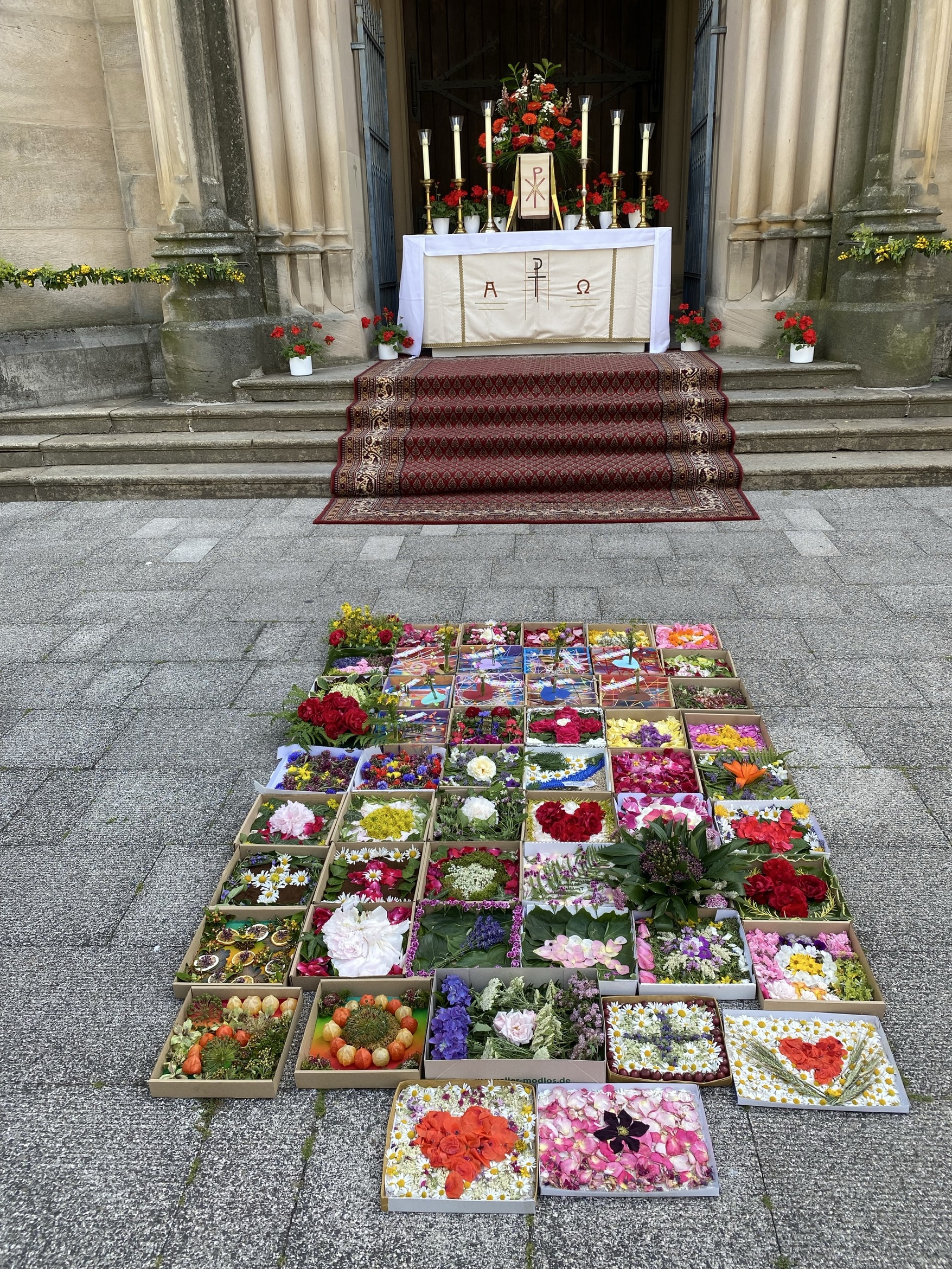 Ein besondere Aktion war der selbst gestaltete Blumenteppich aus Kartons.