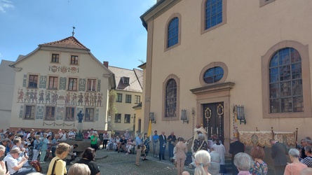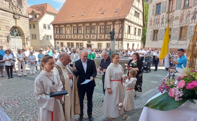 Anschließend fand die Prozession mit Stationen am Rathausplatz, und am Platz vor der Kirche statt.